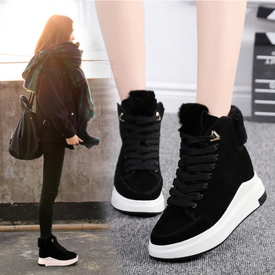 内增高短靴女秋冬绒面女鞋厚底百搭休闲系带鞋保暖加绒防滑休闲鞋
