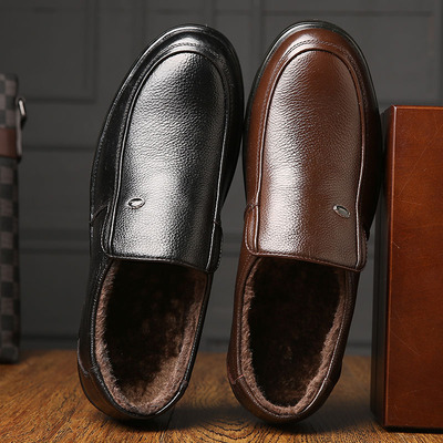 冬季男士真皮棉鞋男加绒保暖皮鞋老人中老年爸爸鞋子中年人冬天二