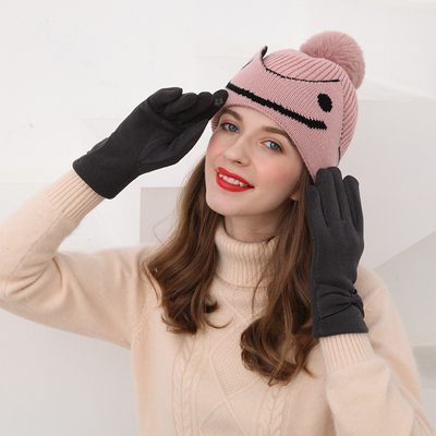 羚羊早安 羊毛手套女士冬季加绒加厚韩版秋冬可爱分指手套
