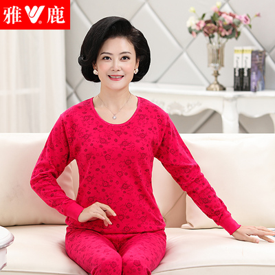 雅鹿中老年秋衣秋裤套装女纯棉印花妈妈老人保暖内衣男爸爸棉毛衫