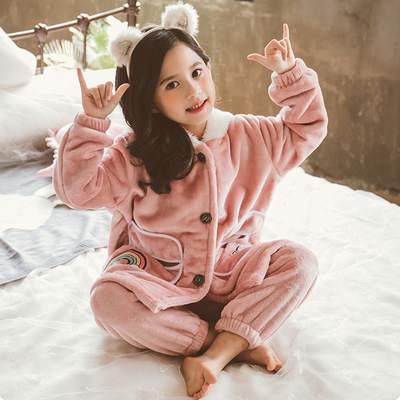 左爱佑童儿童秋冬睡衣女童中大童法兰绒加厚女孩冬季珊瑚绒家居服