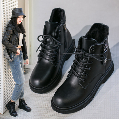 凡麦马丁靴女冬季2019新款韩版百搭粗跟机车靴英伦风圆头加绒短靴