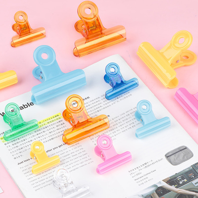 24个圆形夹子彩色透明小清新糖果色长尾夹大号票据夹学生试卷文件夹子文具中小号办公生活家用塑料夹子批发