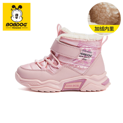 巴布豆家族童鞋男童冬女童鞋儿童运动鞋加绒休闲鞋跑步鞋子机能鞋
